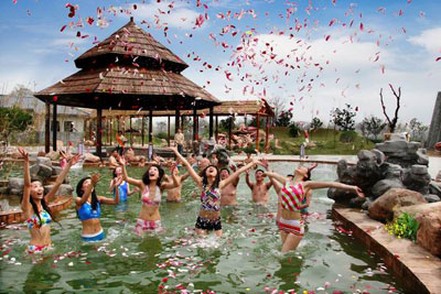 在悶熱的夏天里,一身汗漬的你跳進溫度適宜的溫泉里,躺在溫泉池中,閉上眼,感受那汩汩熱流不停歇地從身下冒出,全身心放松,享受溫泉善意的簇擁。此時,凡塵的喧囂遠離了,都市的壓力洗脫了,人的心結也解開了,久違的愜意就浮上心頭了。這時候你就會發現,溫泉不是只屬于冬天的專利,原來夏天也同樣適合,而且溫泉真像有人說的那樣——是“心的故鄉”,可以放飛心情,愉悅身心。