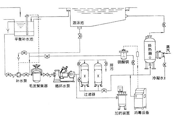 (1)把重點(diǎn)放在水處理除污能力和確保高質(zhì)量出水上。從中外游泳池,凡開(kāi)群眾場(chǎng)時(shí),到了夏季人流高峰期,水質(zhì)變壞的事實(shí)看,無(wú)論多短的循環(huán)周期,無(wú)論多大的循環(huán)流量都無(wú)濟(jì)于事,那么,還要再縮短周期多少?再加大循環(huán)流量多少?還要用多大的代價(jià)才能使水質(zhì)改善?誠(chéng)然不是辦法。為何單純砂濾顯得無(wú)能為力呢?因?yàn)榭s短循環(huán)周期,加大循環(huán)流量的結(jié)果是,一次次的在密閉容器里穿透,形成無(wú)效空轉(zhuǎn)。有人要問(wèn),為何不加藥絮凝?眾所周知,這種池水的絮凝效果很難令人滿意。能不能把主攻方向改變一下呢?試想,我們把主攻方向改變?yōu)樵黾映勰芰,確保出水質(zhì)量和水的氧化與活化上,情形就會(huì)完全不一樣了。大家都有這樣的經(jīng)驗(yàn),在沒(méi)有水處理的換水泳池。第一天注入的新鮮水,在人流高峰期的夏季也是不會(huì)壞的,第二天也沒(méi)有壞,第三天開(kāi)始才明顯變壞。有水處理設(shè)備的水質(zhì)變壞也不是1~2天的事情,而是多日水處理不達(dá)標(biāo)累積造成的。假如我們天天真正做到都能處理一遍,使這有限的一池水,成為高質(zhì)量的新鮮水,應(yīng)該是沒(méi)有問(wèn)題的。我們?cè)囍@樣做了,在上百個(gè)館池和水上樂(lè)園取得了巨大成功。