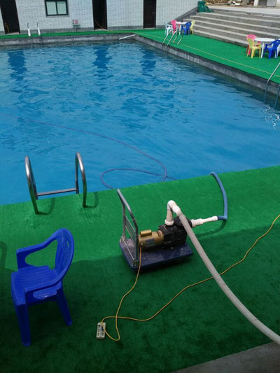 次河北定州室外游泳池主要有重力式泳池循環過濾設備,泳池水處理藥劑,吸污機等等一整套游泳池設備及配套設備。