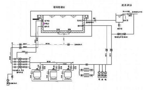 按照某建筑設(shè)計(jì)研究院設(shè)計(jì)的改擴(kuò)建工程圖紙資料。游泳池長(zhǎng)度約為22m,寬度為8m,平均水深按1.35m計(jì)(泳池深區(qū)1.5m,淺區(qū)1.2m),有效容積為237.6m3。