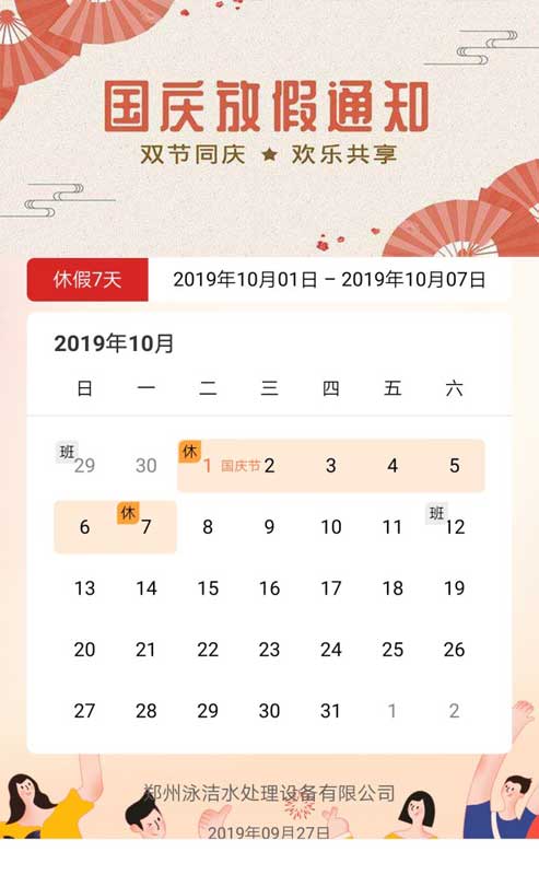 其次,鄭州泳潔國(guó)慶放假通知: