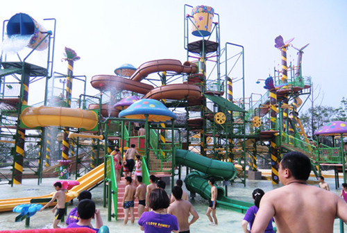 大型水寨是超大型互動水上城堡,此水上游樂設(shè)備占地面積達2000平方米,超過7屋樓的總高,6道滑梯總長超過350米,多項娛樂設(shè)施匯集于一身,還有兩個超級大翻桶,時不時灑下滿天飛舞的水花令人瘋狂尖叫。