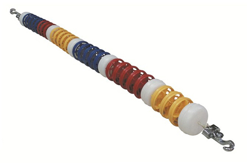 本泳道線適合各種一般的比賽或訓(xùn)練,一般由白色圓形浮子將紅色,藍(lán)色,黃色的風(fēng)車(chē)型的浮子間隔排列。即美觀,又顯眼。浮子的材質(zhì)是由高密度低壓聚乙烯制成,質(zhì)量保證,風(fēng)扇葉狀的浮子助于消波,具有很好的防浪效果。