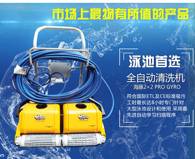 •   海豚2x2游泳池吸污機是以色列軍工轉民用產品代表,配電線防纏繞設備,配陀螺儀,標準直線行走,可爬墻清洗池壁及水線,近幾屆奧運會指定使用產品,全球市場份額40%。