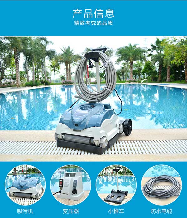 彩鯊游泳池吸污機是泳池吸污設備中游泳池清潔中受大家認可的設備之一,增強型這一款適合大型游泳池使用。